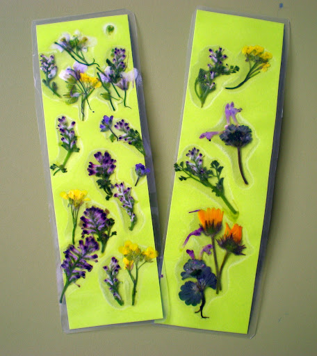 ...las hemos chafado con unos cuantos libros encima, luego las hemos colocado en el marcapáginas...